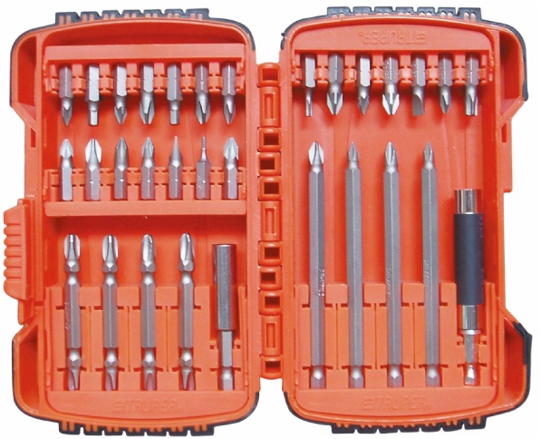 Screwdriver bits set in bi-color plastic box